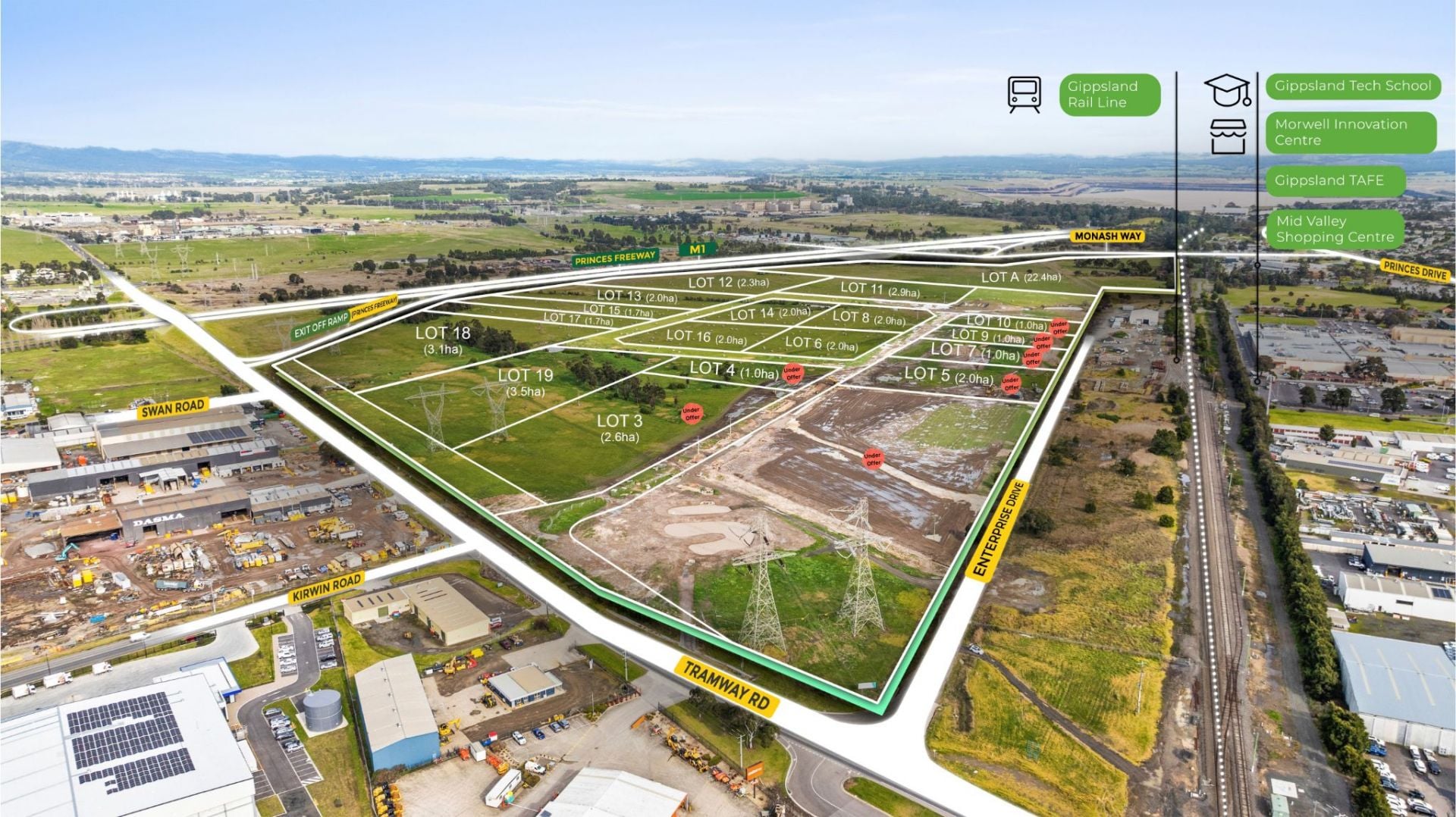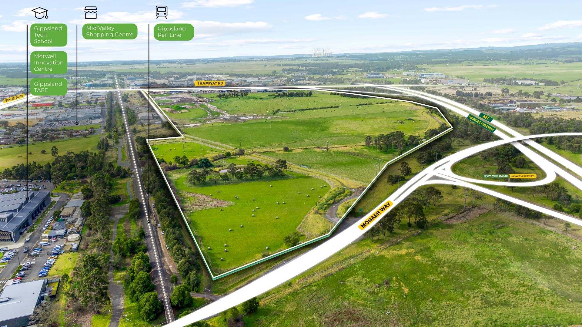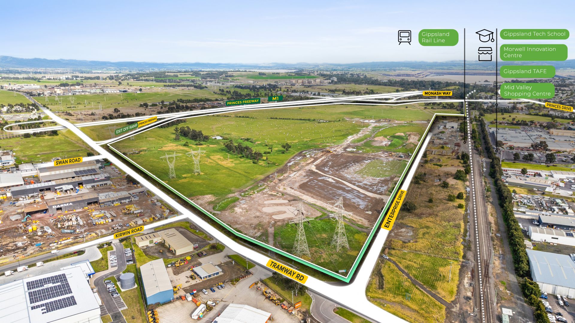 Industrial 1 Zone land adjacent to the Princes Freeway / M1, ideal for large-scale manufacturing, logistics, and warehouse developments.